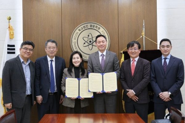 The signing ceremony was attended by Cho Sun-young, Chairperson of Kwangwoon University; Kim Do-young, President; and Jung Seok-jae, Vice President, among others.
